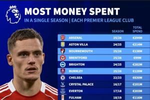 英超各球队单赛季支出纪录(球队按首字母排序)